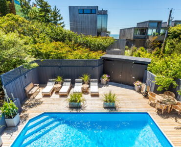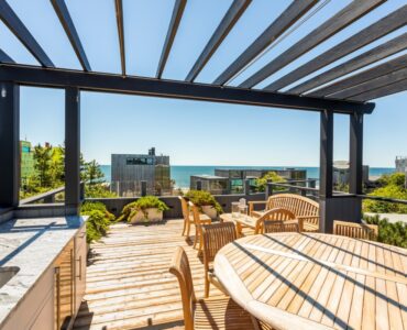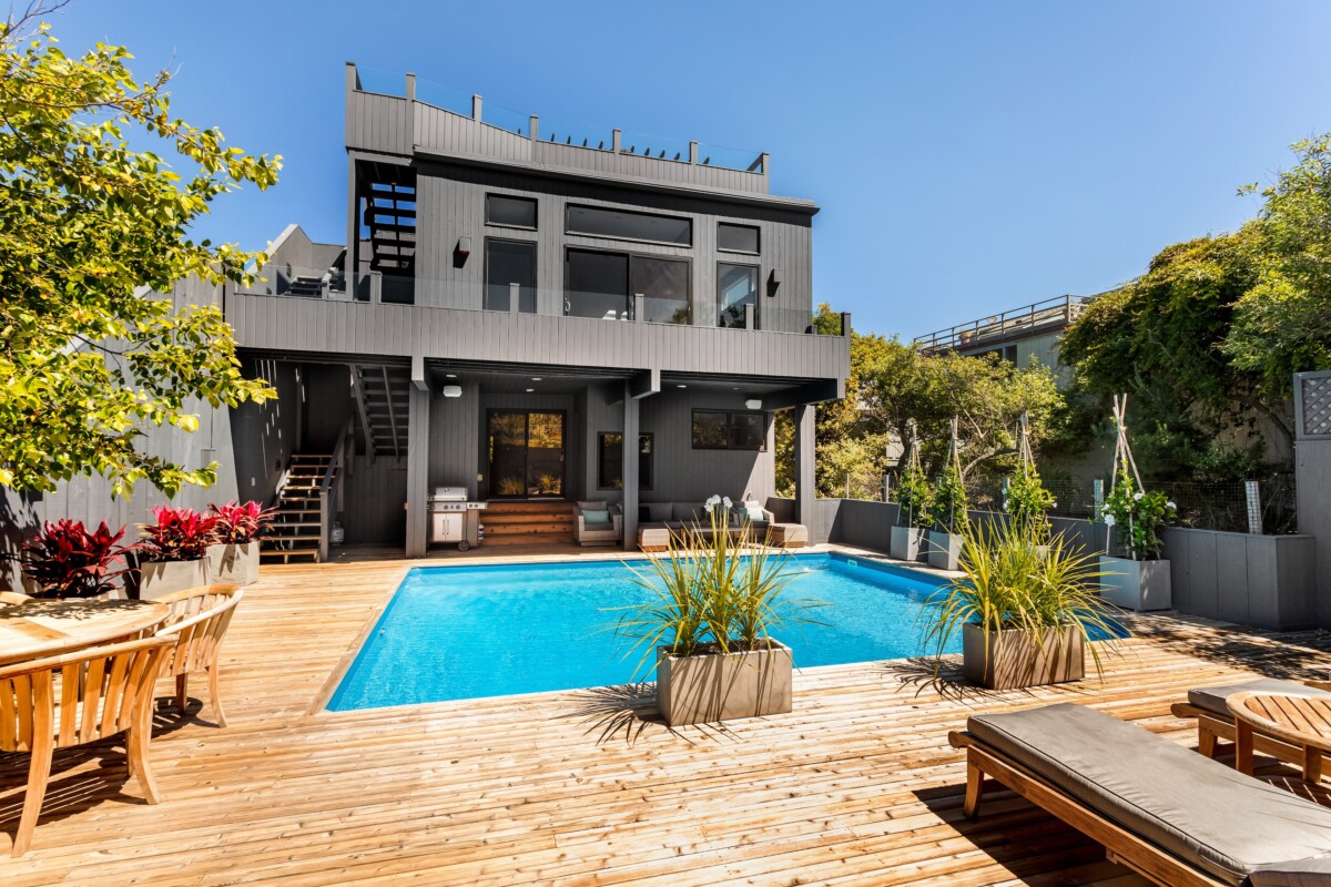 Casual Pines beach living at its best. Large contemporary with superb ocean views. A 360 degree panoramic roof deck featuring a pergola covered wet bar that is deal for al fresco lunches & sunset entertaining. Just one lot back from the ocean and very close to town. All bedrooms feature electric shades & newly renovated ensuite baths with heated floors. Two bedrooms outfitted with king beds and the third bedroom has 2 queen beds. The many amenities include a sumptuous & private pool deck, all new hardwood floors, newly renovated chef’s kitchen & walls of glass making this the perfect choice for a week by the sea.