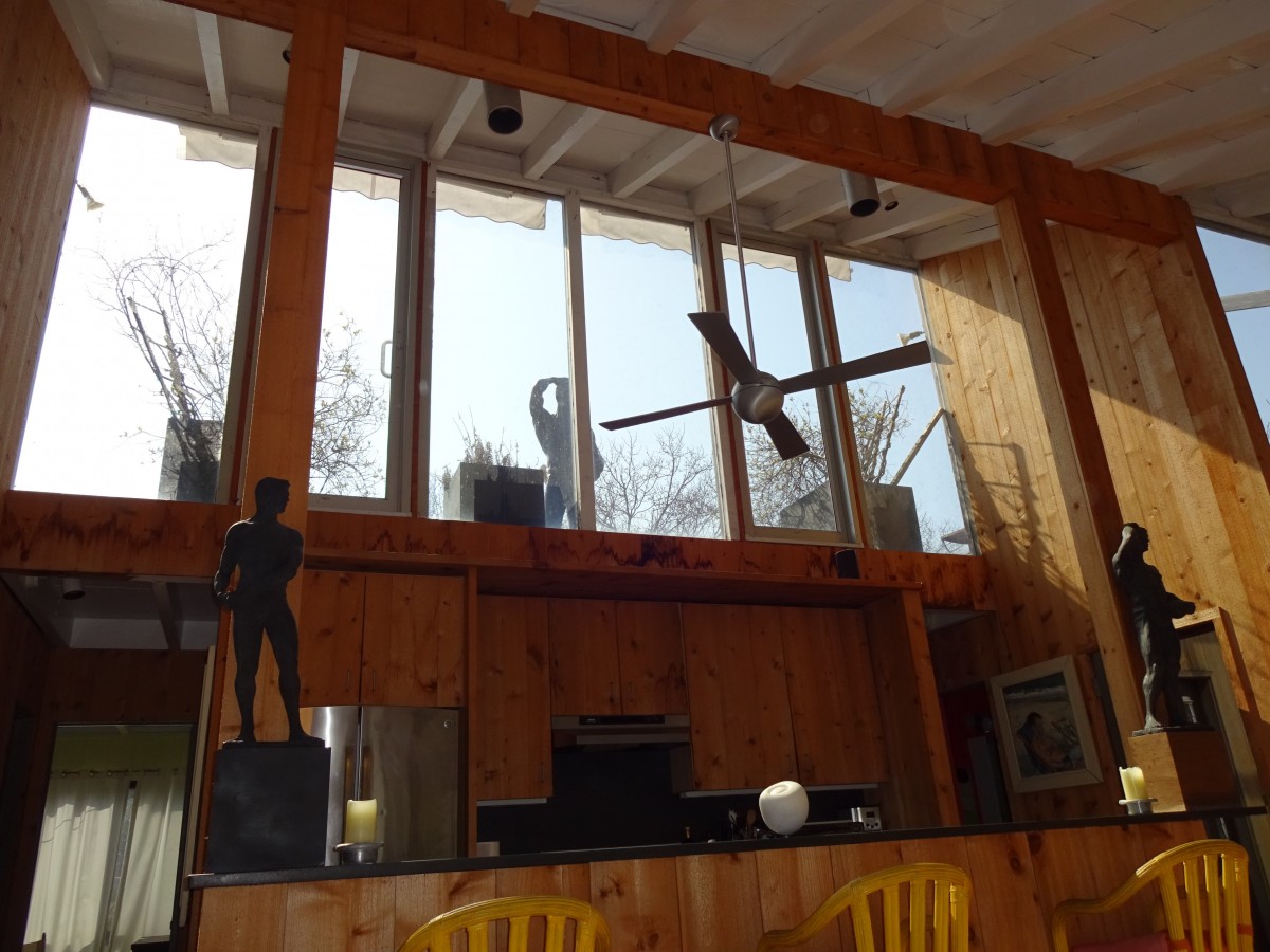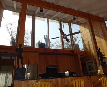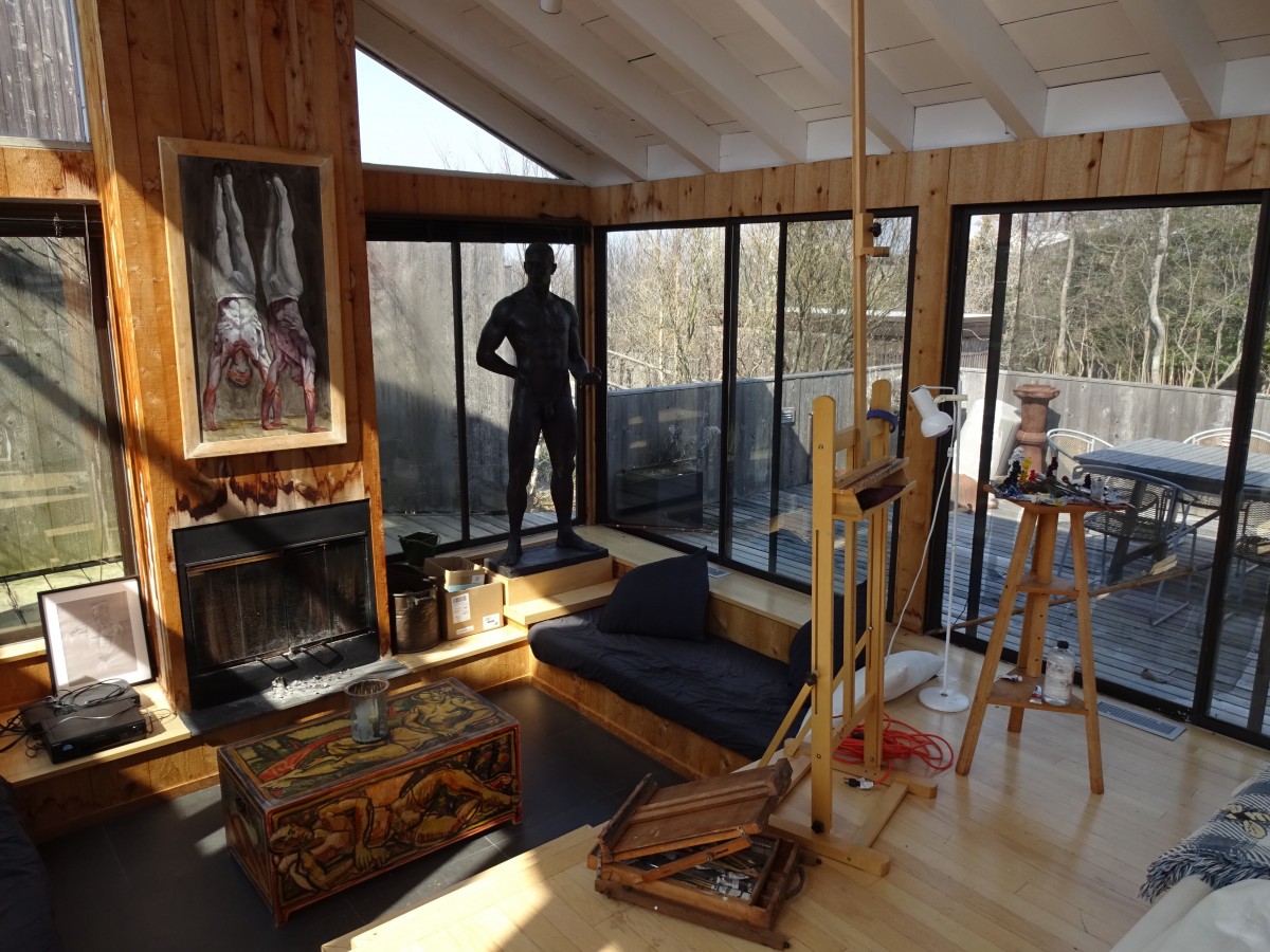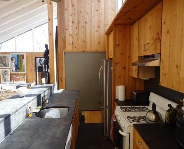 Marvelous artist’s residence on the quiet east end of the Pines. Light flooded, double height Great Room with open kitchen, living, dining plan.  3 bedrooms with high ceilings and lots of natural light. Steps to the Great South Bay.