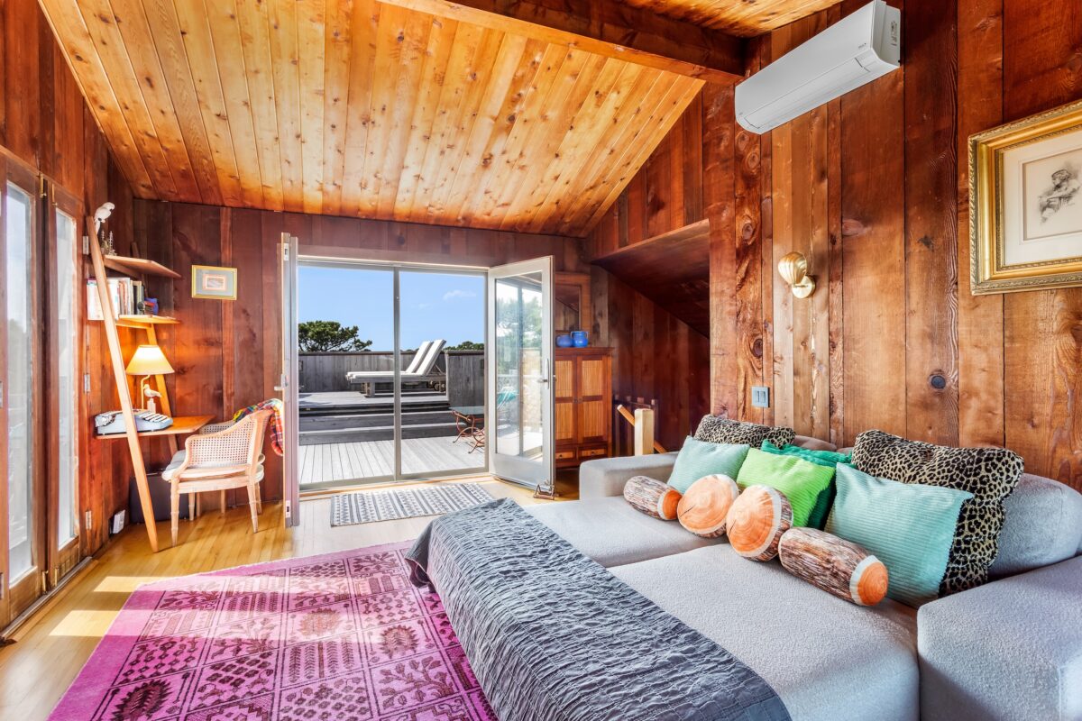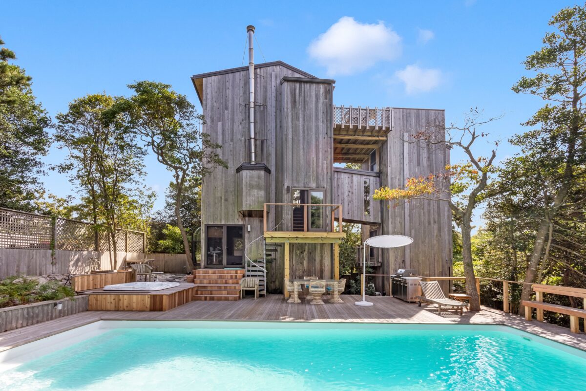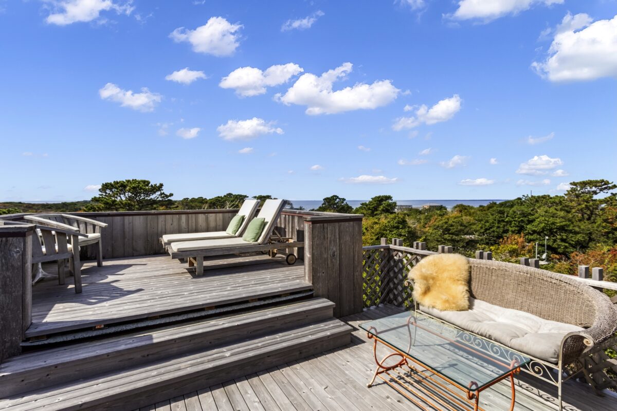 Experience the height of elegance with a classic Pines vibe. 634 FIB offers 3 bedrooms, 2.5 luxuriously renovated baths, heated pool and hot tub + gas grill all situated within lush gardens and fantastic outdoor space bedecked with Russell Woodard midcentury outdoor furniture. Panoramic views from the top floor living room with adjacent outdoor deck provide sweeping views of Fire Island, perfect for sunset cocktails. Prime Season Monthly Rental (July/August) $45,000